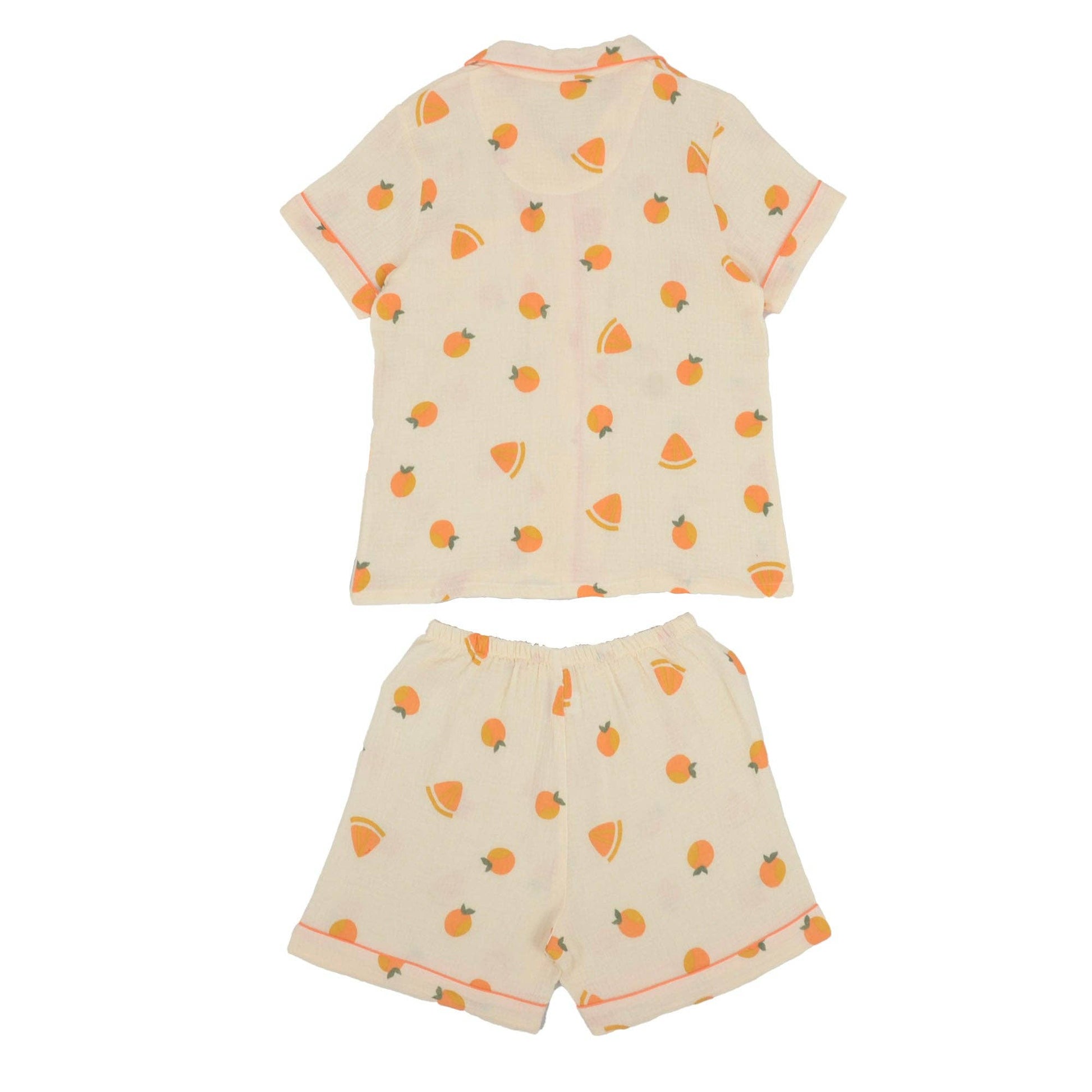 Enjoy cozy days in our Feeling Peachy Lounge Pajamas, featuring a charming fruit print on soft, textured 100% cotton fabric. This playful set includes a short-sleeve button-front shirt with a collar and matching shorts, perfect for relaxing at home. Pair with slippers for an effortlessly comfy and cute look.