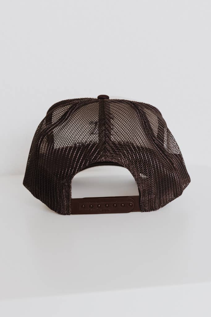 The Hold Your Horses Hat combines classic trucker style with modern comfort. Featuring a structured 5-panel design with a 4" foam front and breathable mesh back, this brown and cream hat offers a perfect fit with its adjustable snapback closure. The embroidered design and matching color braid accent add a stylish touch, making it an ideal accessory for everyday wear. Durable and comfortable, it fits sizes 6 1/2 to 7 5/8, ensuring a secure and personalized fit wherever your adventures take you.